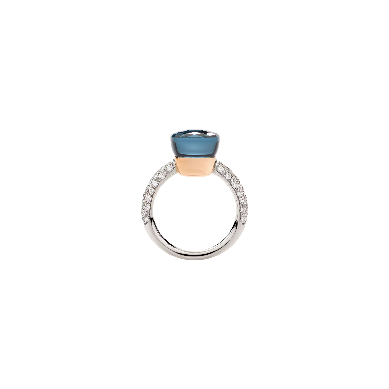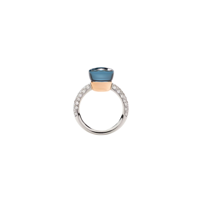 Pomellato arricchisce di diamanti e nuove tonalità la sua collezione di gioielli Nudo Deep Blue. La ricchezza del colore rappresenta l’anima di ogni gioiello Nudo, e la nuova doppietta di pietre blu mare cattura la dolcezza delle sfumature ipnotiche e mutevoli di una soleggiata riva mediterranea. L’uso di pavé di diamanti, scintillanti come raggi del sole che danzano sulla superficie dell’acqua, sono proposti negli anelli con doppiette di topazio blu London e turchese.