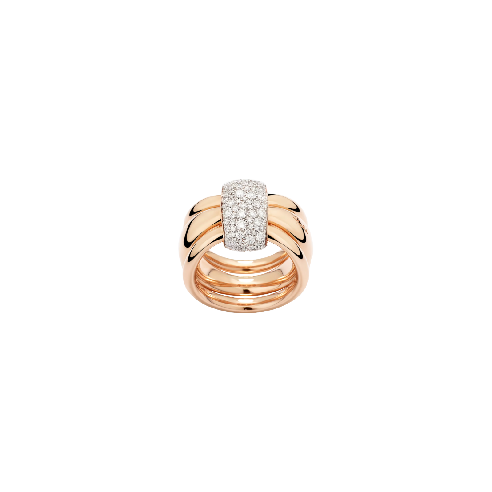 Pomellato Together celebra la bellezza dei legami — quelle connessioni silenziose e potenti che definiscono ciò che siamo. Realizzato in oro rosa, questo anello scultoreo presenta tre fasce indipendenti dal movimento naturalmente dinamico, unite da un elemento centrale fisso illuminato da diamanti bianchi su oro rosa rodiato bianco. L’inconfondibile pavé irregolare di Pomellato aggiunge una luminosità intensa, mentre i volumi generosi e raffinati sono rifiniti a mano per garantire la caratteristica morbidezza e comodità della Maison. Indossato come un simbolo moderno o una promessa personale, racchiude il calore dello stare insieme con un’eleganza contemporanea.