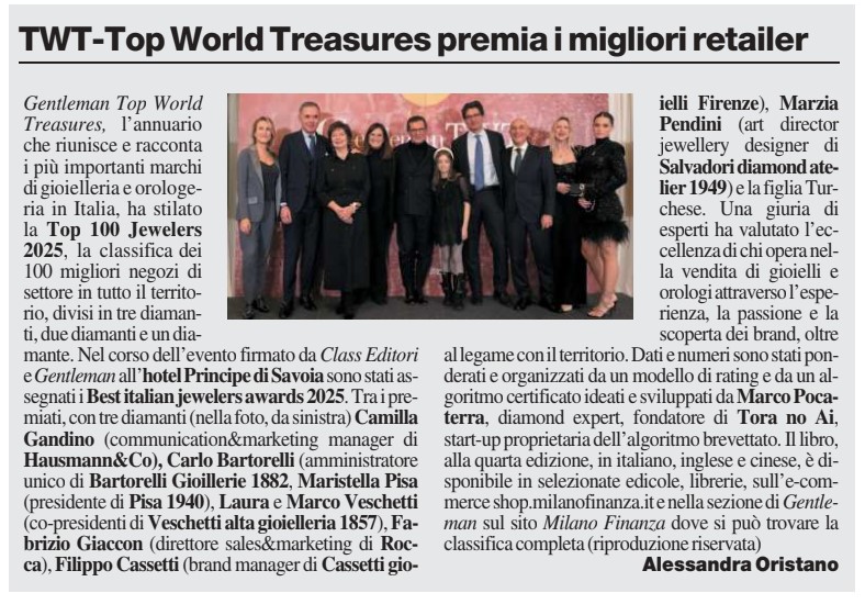 Nella TOP 100 assoluta, Bartorelli Gioiellerie tra i sette i vincitori dei Tre TWT Diamonds