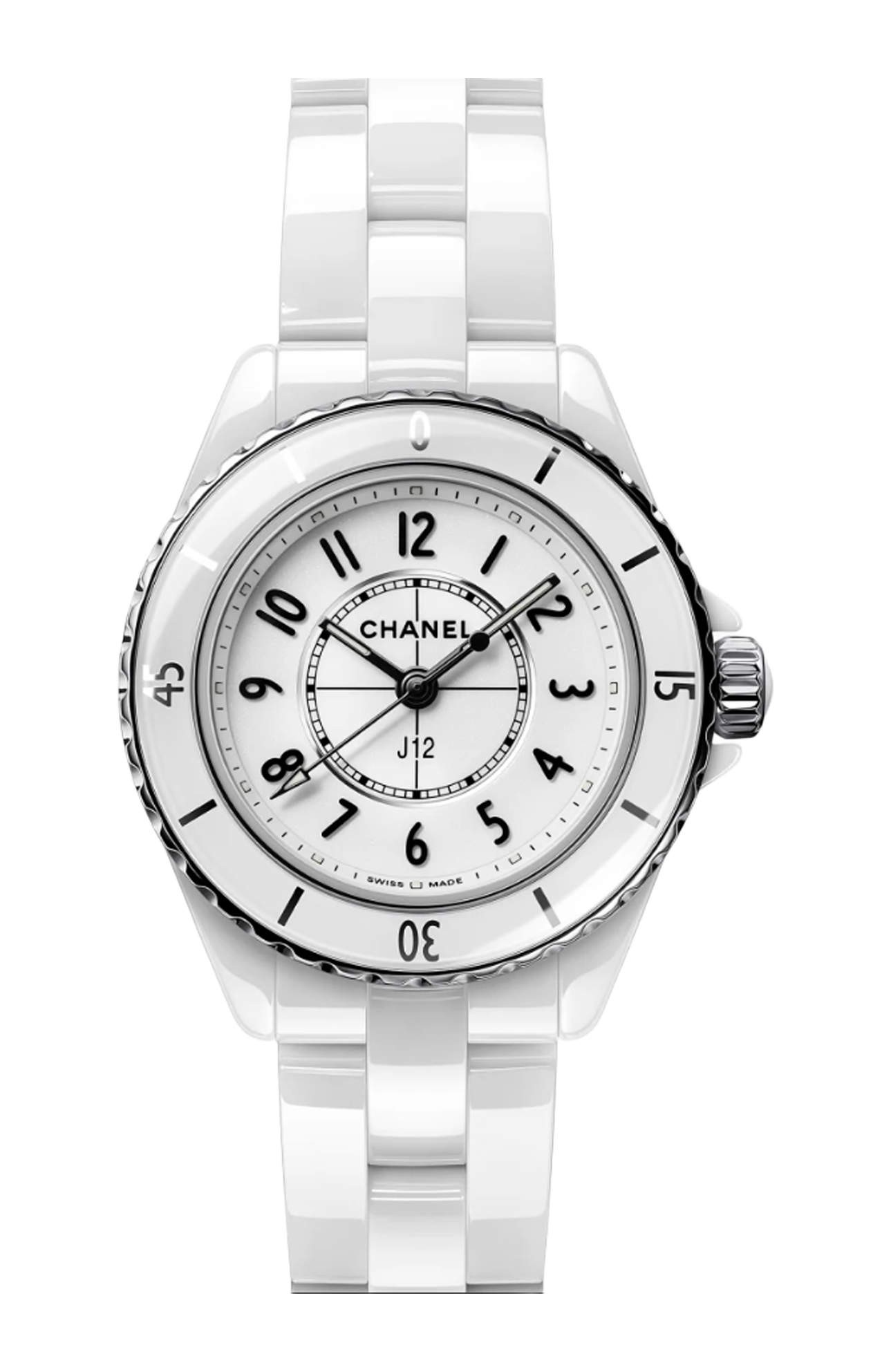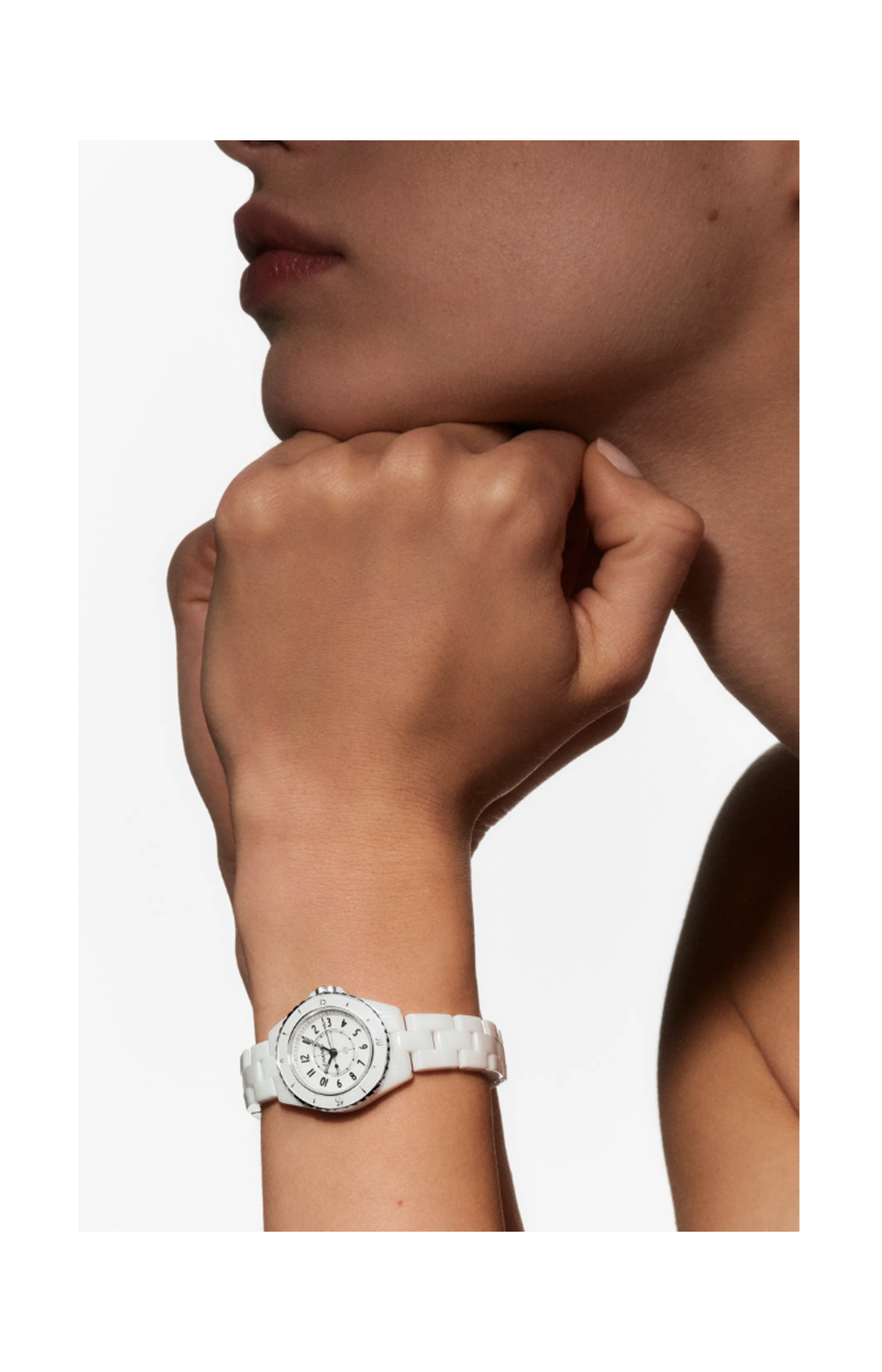 J come le leggendarie barche a vela da regata che hanno ispirato il J12: le imbarcazioni classe J. La cassa è composta da un unico corpo centrale realizzato da un solo blocco di ceramica bianca ad alta resistenza. La corona non avvitata in acciaio è riconoscibile da un cabochon in ceramica bianca ad alta resistenza. La lunetta fissa in acciaio è dotata di un anello in vetro zaffiro verniciato bianco. Il quadrante laccato bianco è dotato di applicazioni nere e di indici in ceramica nera posizionati e fissati a mano uno ad uno. Le lancette sono laccate e rivestite di un materiale luminescente applicato a mano, per garantire una lettura istantanea dell’ora. Il movimento al quarzo garantisce precisione e affidabilità. Il bracciale è composto da maglie in ceramica bianca ad alta resistenza assemblate a mano. La tripla chiusura pieghevole in acciaio è composta da 4 elementi meticolosamente assemblati a mano. Ore, Minuti, Secondi. Dimensioni 28 x 8,8 mm. Impermeabilità 30 m.