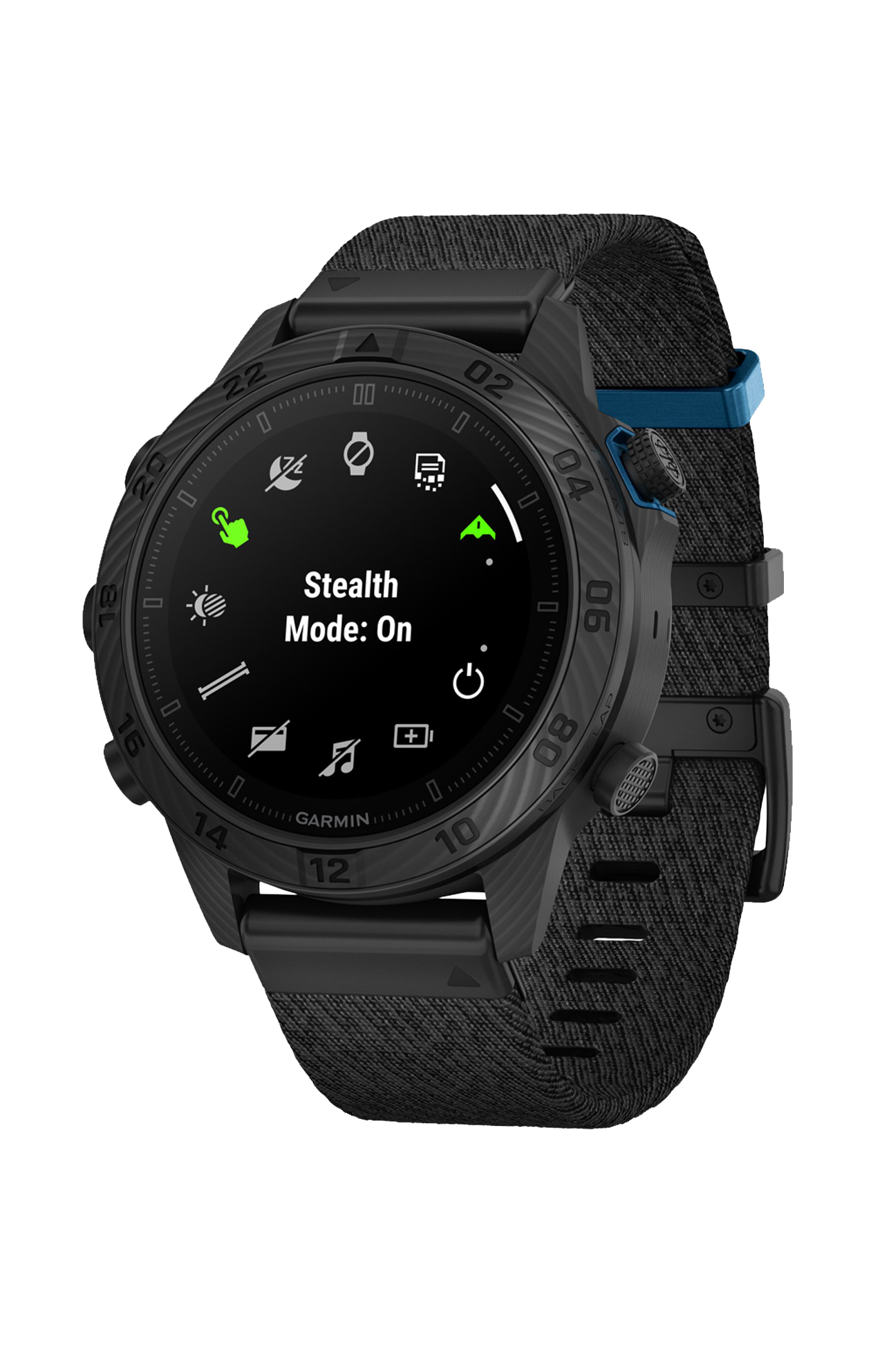 La cassa ultraleggera e ultrarobusta è realizzata con 130 strati di fibra di carbonio, che conferiscono a ogni orologio un motivo unico. Il brillante display touchscreen AMOLED offre fino a 16 giorni di autonomia in modalità smartwatch e fino a 42 ore in modalità GPS.