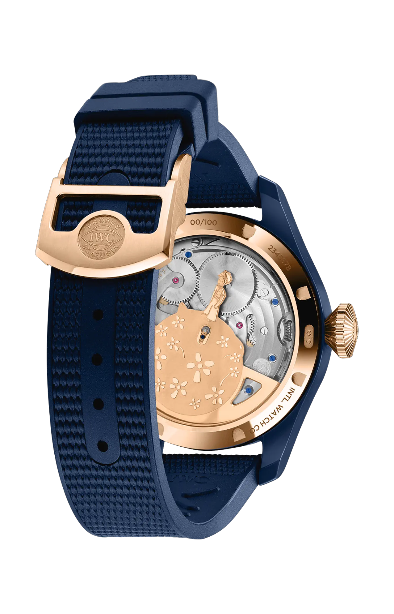 Caratterizzato da una cassa in ceramica blu e da un quadrante blu, il Big Pilot’s Watch Perpetual Calendar Tourbillon Le Petit Prince combina due complicazioni di alta orologeria ed è limitato a 100 esemplari.