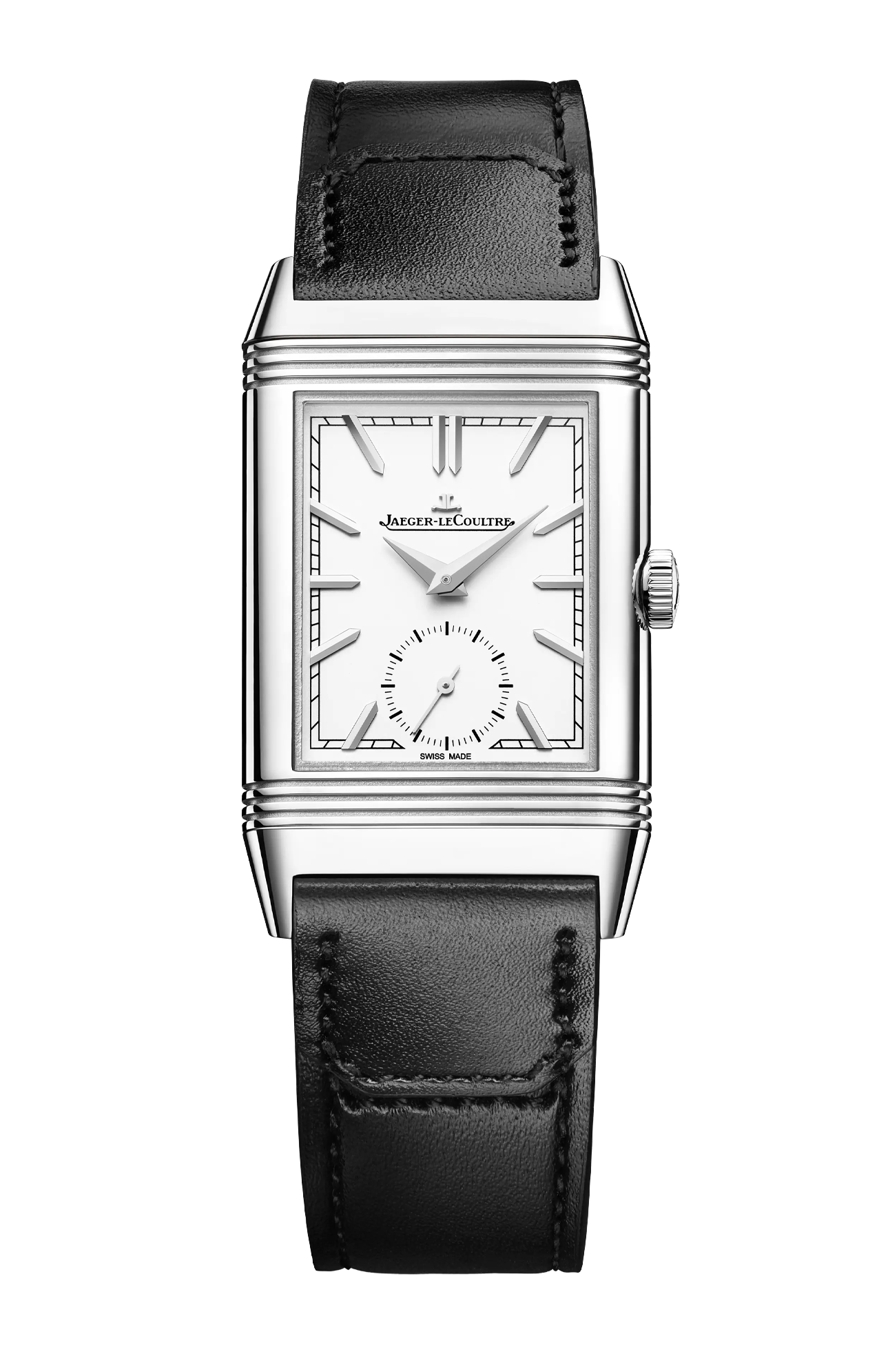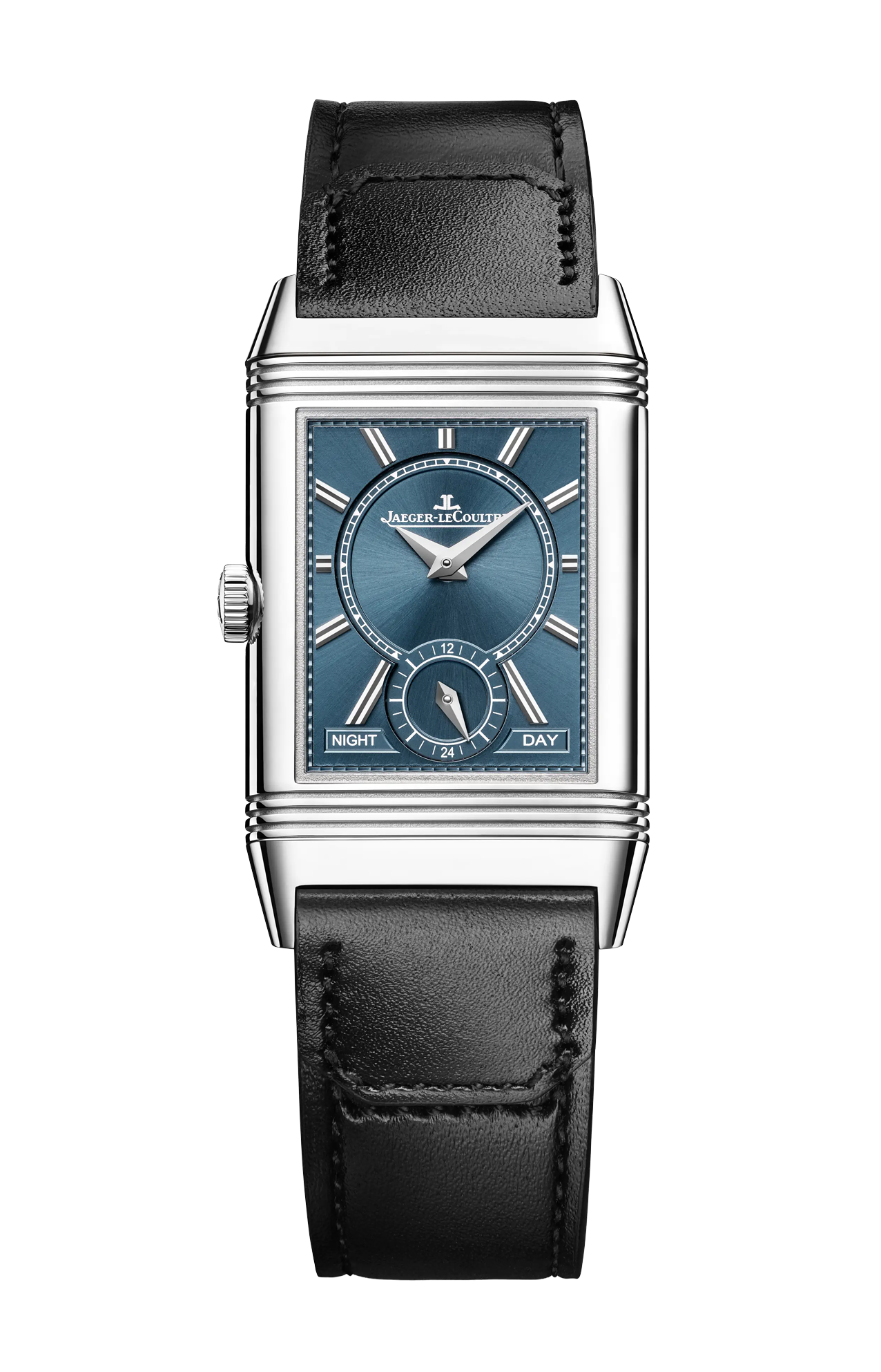 Dotato della complicazione Duoface, l’orologio Reverso Tribute Duoface Small Seconds si ispira ai codici Art Déco dei primissimi modelli del 1931. Sul fronte, il quadrante bianco opalino mostra chiaramente le sue caratteristiche e funzioni: la minuteria “chemin de fer”, gli indici trapezoidali applicati, le lancette Dauphine e i piccoli secondi a ore 6. Sul retro, il quadrante blu con finitura soleil lascia spazio a un indicatore giorno/notte centrato a ore 6. Il secondo fuso orario si regola facilmente tramite un pulsante posto sul lato della cassa in acciaio. L’orologio è dotato di due bracciali disegnati da Casa Fagliano: il primo in pelle nera; il secondo, dello stesso colore, in pelle e tela.