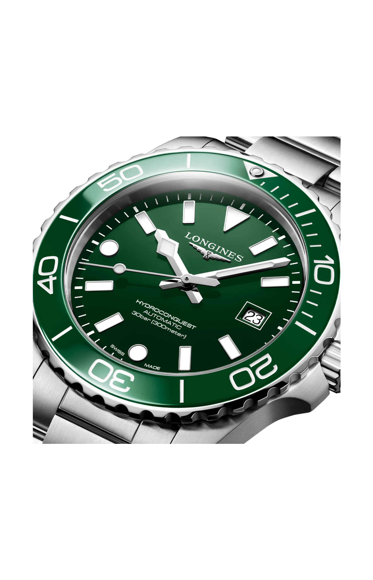 OROLOGIO AUTOMATICO, Ø 42.00 MM, ACCIAIO INOSSIDABILE E LUNETTA IN CERAMICA, L3.788.4.06.6 DATE, MOVIMENTO MECCANICO A CARICA AUTOMATICA CON FREQUENZA DI 25'200 ALTERNANZE ORARIE E RISERVA DI CARICA DI CIRCA 72 ORE, BILANCIERE-SPIRALE IN SILICIO MONOCRISTALLINO. CORONA A VITE LUNETTA GIREVOLE UNIDIREZIONALE, IMPERMEABILE FINO A 30 BAR, VETRO ZAFFIRO ANTIGRAFFIO CON TRATTAMENTO ANTIRIFLESSO MULTISTRATO SU ENTRAMBI I LATI. QUADRANTE VERDE LACCATO LUCIDO, SWISS SUPER-LUMINOVA®. BRACCIALE IN ACCIAIO INOSSIDABILE, CON DOPPIA CHIUSURA DEPLOYANTE DI SICUREZZA CON SISTEMA DI MICROREGOLAZIONE.