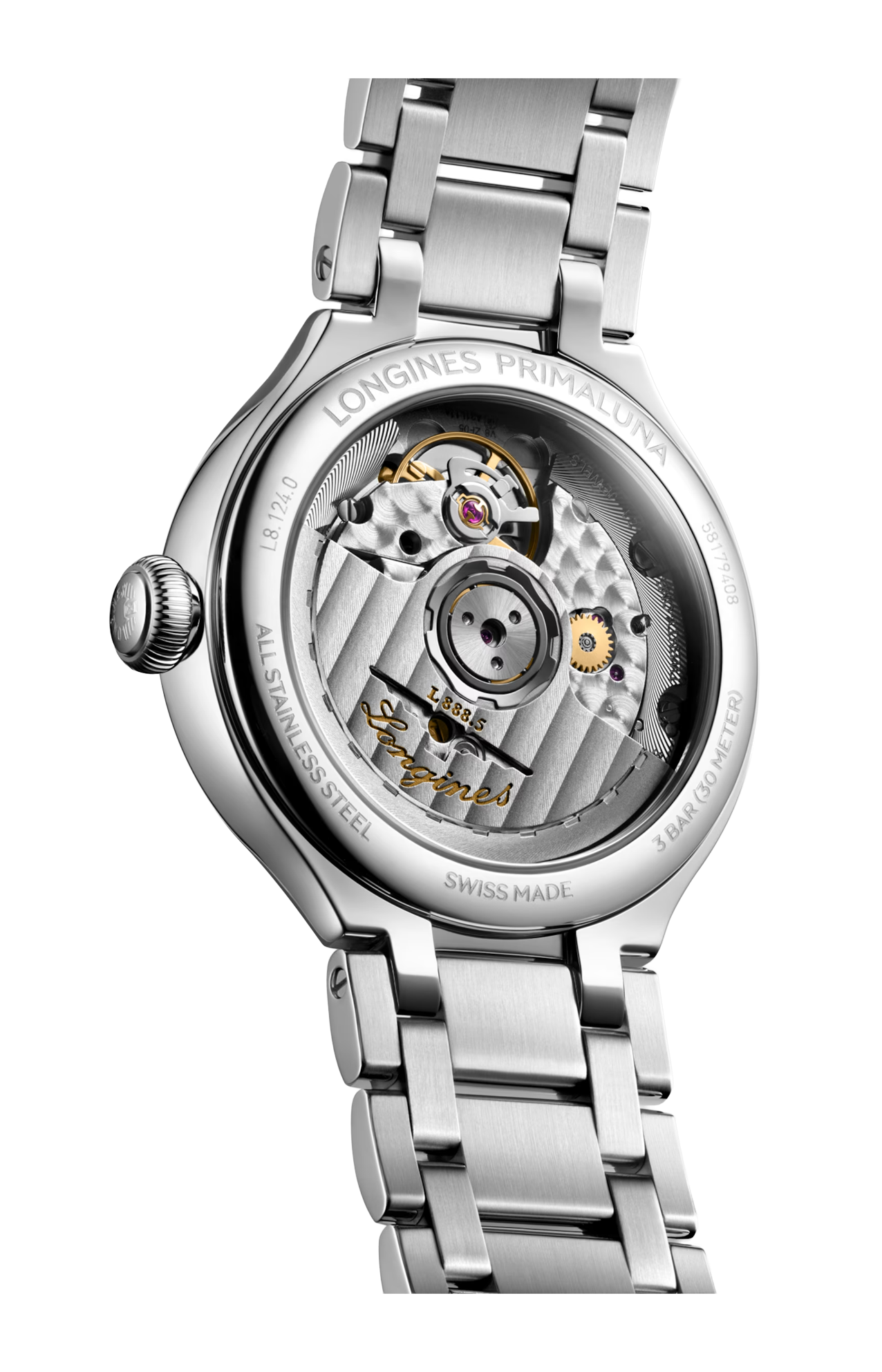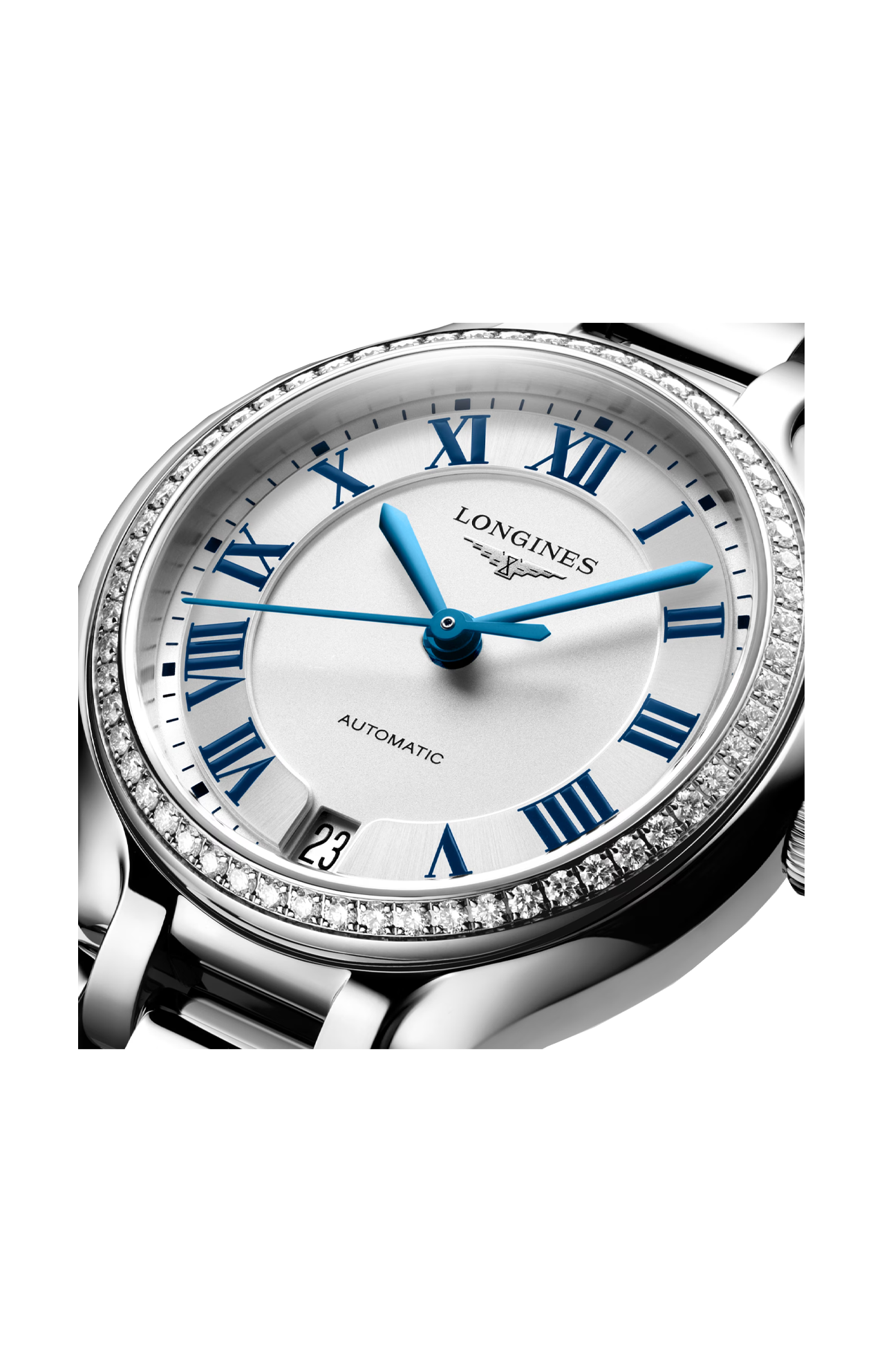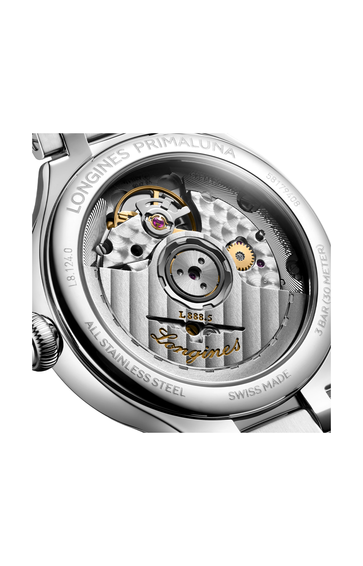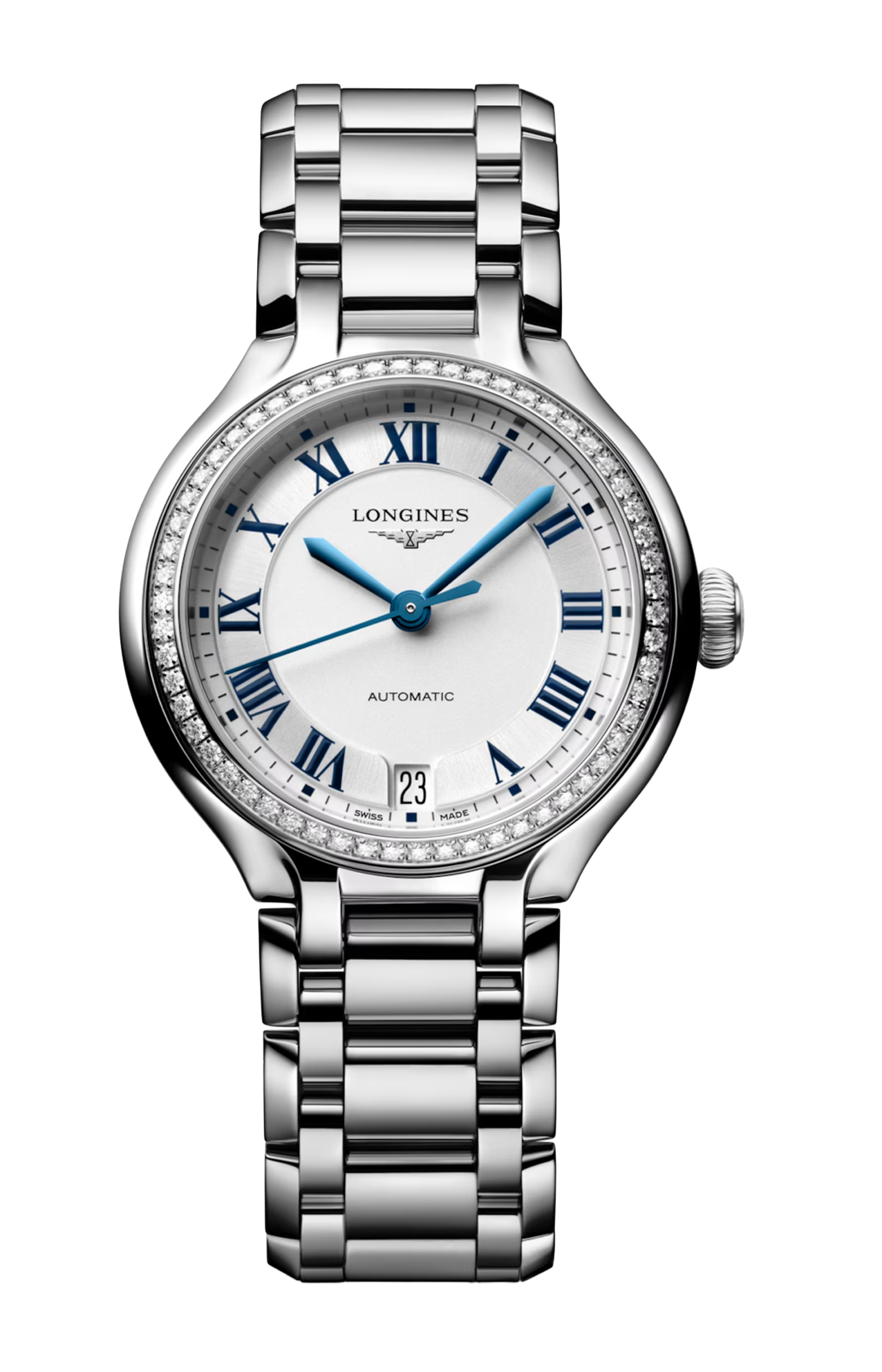 OROLOGIO AUTOMATICO, Ø 34.00 MM, ACCIAIO INOSSIDABILE, L8.124.0.71.6 DATE, MOVIMENTO MECCANICO A CARICA AUTOMATICA CON FREQUENZA DI 25'200 ALTERNANZE ORARIE E RISERVA DI CARICA DI CIRCA 72 ORE, BILANCIERE-SPIRALE IN SILICIO MONOCRISTALLINO. CASSA CON 58 DIAMANTI TOP WESSELTON IF-VVS INCASTONATI, PER UN TOTALE DI 0.580 CARATI, IMPERMEABILE FINO A 3 BAR, VETRO ZAFFIRO ANTIGRAFFIO CON TRATTAMENTO ANTIRIFLESSO MULTISTRATO SU ENTRAMBI I LATI. QUADRANTE ARGENTO A RAGGI DI SOLE. BRACCIALE IN ACCIAIO INOSSIDABILE, CON CHIUSURA DÉPLOYANTE A TRIPLA SICUREZZA E MECCANISMO DI APERTURA A PRESSIONE.