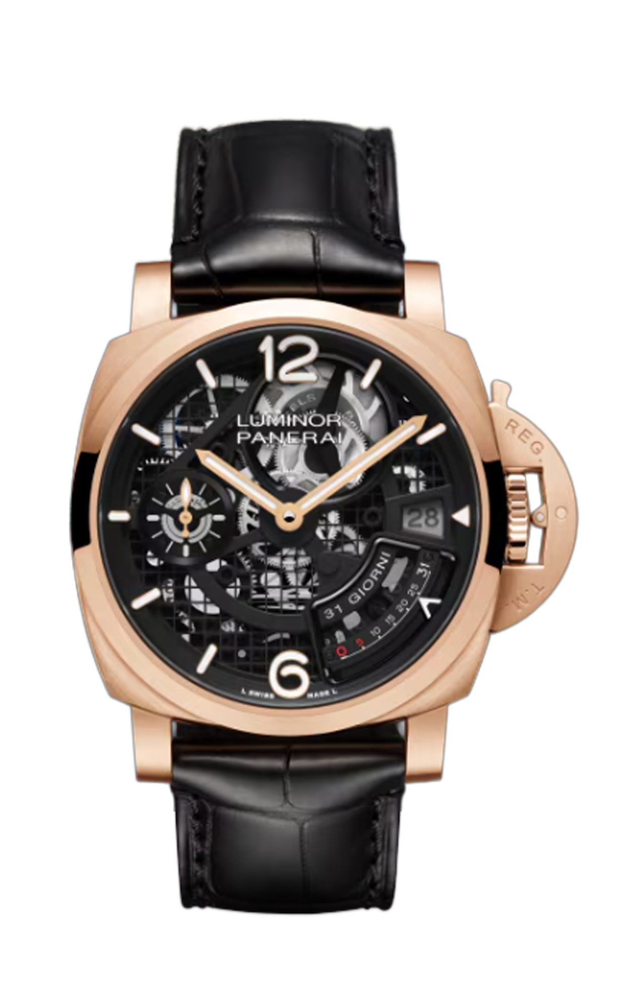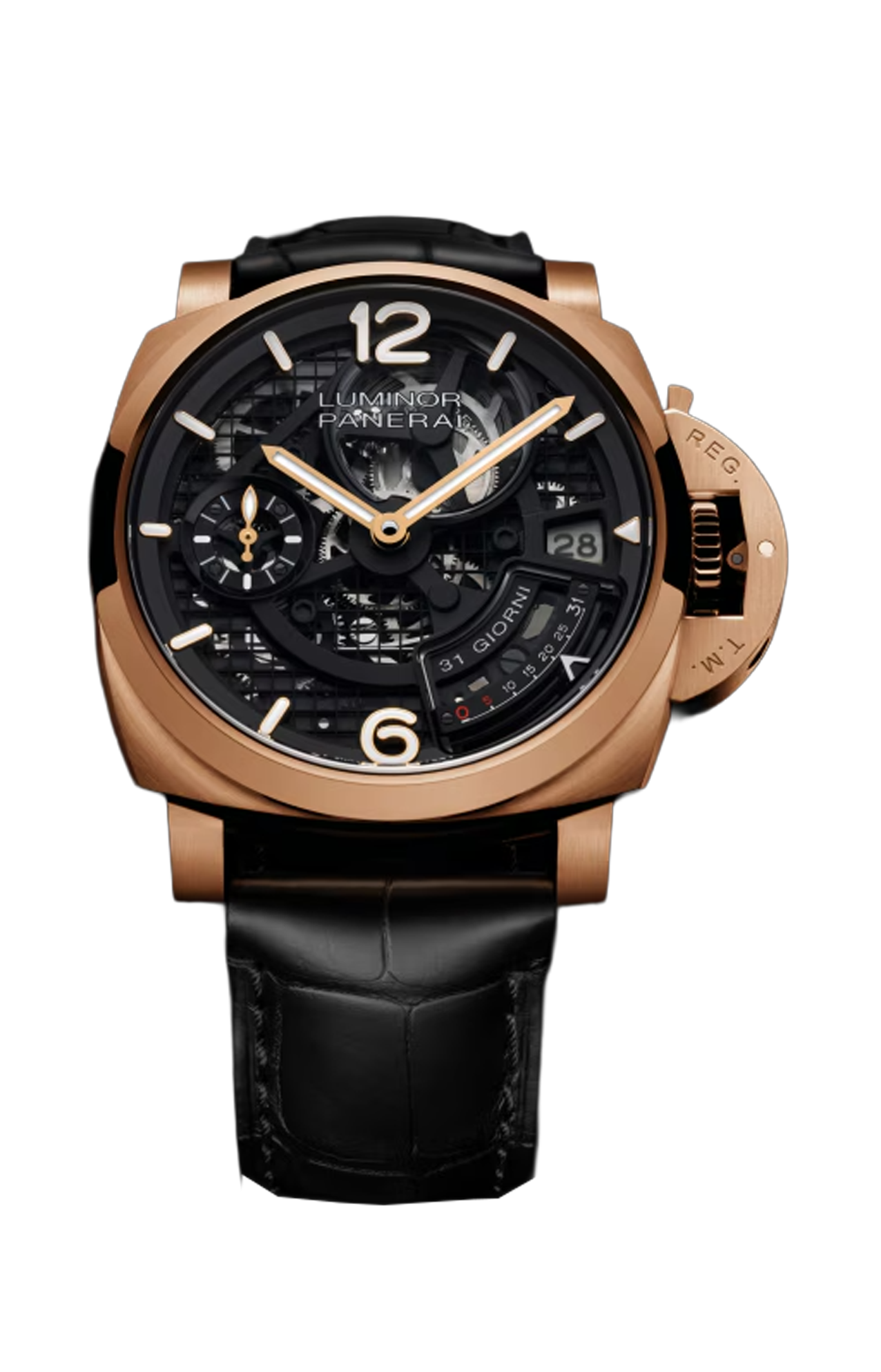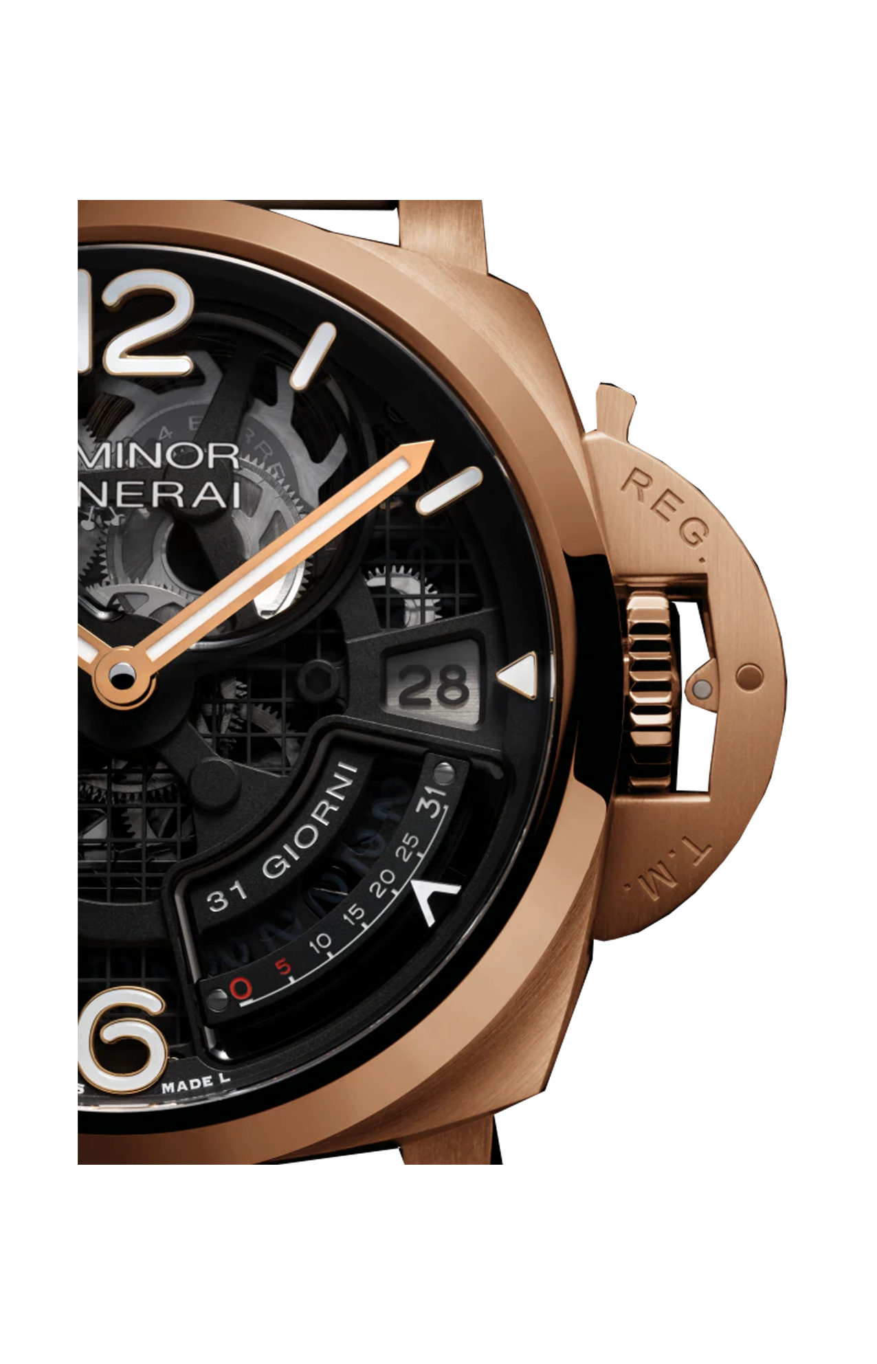 Il Luminor 31 Giorni PAM01631 segna una tappa fondamentale nel percorso di Panerai verso una maggiore autonomia. Per la prima volta, la Maison presenta un orologio in grado di funzionare per un intero mese con una sola carica, superando i limiti definiti dai celebri movimenti 8 Giorni e successivamente 10 Giorni. Questa evoluzione affonda le sue radici nei primi strumenti sviluppati da Panerai per la Marina Militare, concepiti per assicurare affidabilità e prestazioni durature in missione. Un caposaldo che trova la sua forma più avanzata nel lavoro del Laboratorio di Idee di Panerai, dove sette anni di ricerca e sviluppo hanno reso possibile il nuovo calibro scheletrato a carica manuale P.2031/S, con un’autonomia senza precedenti, racchiuso in una cassa Luminor Goldtech™ da 44 mm.