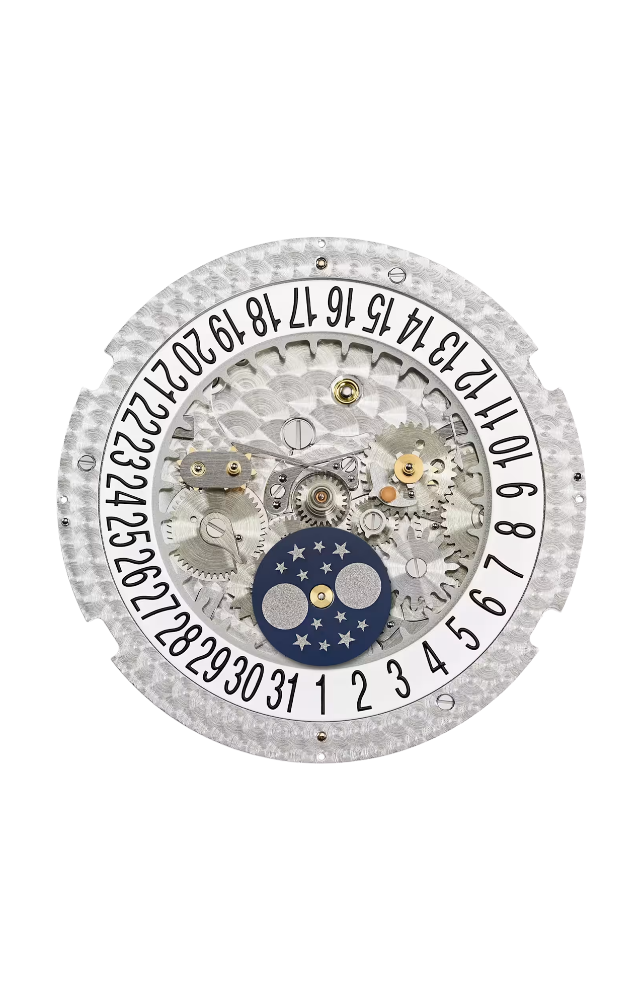 Inventato e brevettato da Patek Philippe nel 1996, l’ingegnoso meccanismo del Calendario Annuale visualizza il giorno, la data e il mese, richiedendo una sola correzione manuale l’anno, alla fine di febbraio. Le indicazioni del Calendario Annuale sono facili da leggere, con quadranti ausiliari per il giorno (tra ore 9 e ore 10) e il mese (tra ore 2 e ore 3), nonché una finestrella con cornice lavorata per la data a ore 6. A tutto ciò si aggiunge una visualizzazione estremamente precisa delle fasi lunari, che si discosta dal vero ciclo lunare di un solo giorno ogni 122 anni. Tutte le indicazioni del calendario possono essere regolate con facilità tramite i correttori incassati nella carrure. Il fondo cassa in cristallo di zaffiro consente di ammirare l’architettura e le finiture meticolose del calibro 26-330 S QA LU a carica automatica con i suoi 319 componenti.