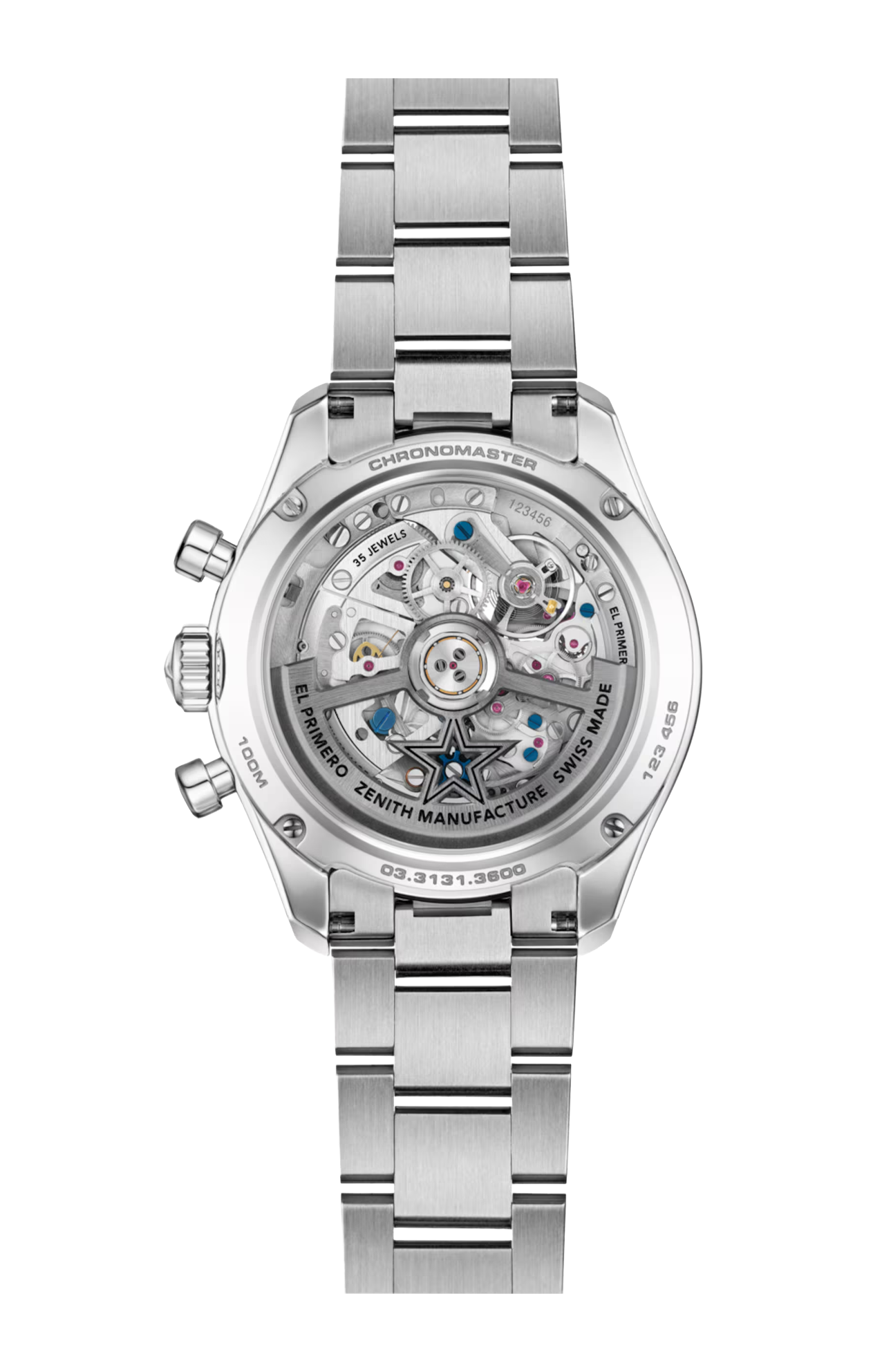 Il movimento cronografico automatico ad alta frequenza El Primero 3600 SK oscilla a 5 Hz (36,000 a/ora), e consente una misurazione precisa di 1/10 di secondo. La struttura scheletrata consente di ammirare i suoi meccanismi complessi, garantendo un’estetica elegante e una riserva di carica di 60 ore.