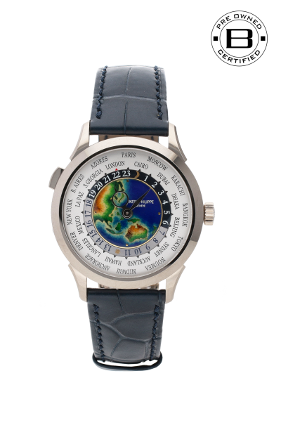 Dall’invenzione di questo meccanismo da parte di Louis Cottier negli anni trenta, i famosi orologi ora universale Patek Philippe sono stati spesso decorati con mappe in smalto grand feu cloisonné raffiguranti diverse aree del mondo. Nel 2022, Patek Philippe rende omaggio al dinamismo del sud-est asiatico e dell’Oceania declinando questo modello in una nuova versione in oro bianco con mappa in smalto grand feu cloisonné. Per coniugare geografia e poesia, il maestro artigiano delimita innanzitutto il contorno dei continenti e delle isole con un sottile filo d’oro. In seguito, riempie gli alveoli con smalti di diversi colori per riprodurre gli oceani e le terre emerse, passando a più riprese la placca smaltata al forno a temperatura elevata.