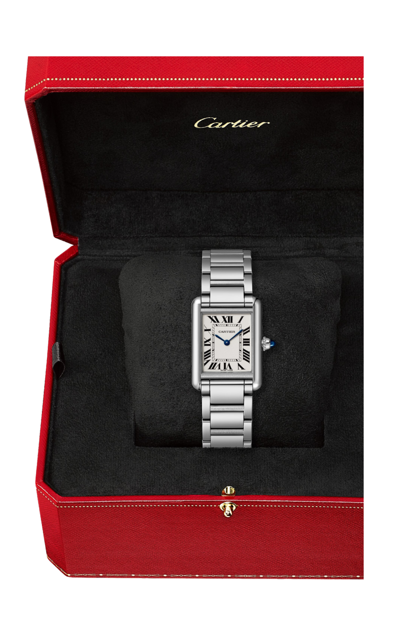 Louis Cartier creò l'orologio Tank nel 1917. Nacque una leggenda. Il primo prototipo fu presentato come regalo al generale Pershing alcuni anni prima che l'orologio venisse immesso sul mercato nel 1919. Le anse si fondonо perfettamente con i bordi nudi dei brancard verticali piatti, conferendo all'orologio la sua estetica unica. Le linee pulite e nitide si sono rivelate estremamente apprezzate da una clientela elegante e dallo spirito libero. L'ormai iconico orologio Tank ha ispirato innumerevoli varianti, riuscendo tuttavia a preservare la sua identità distintiva.