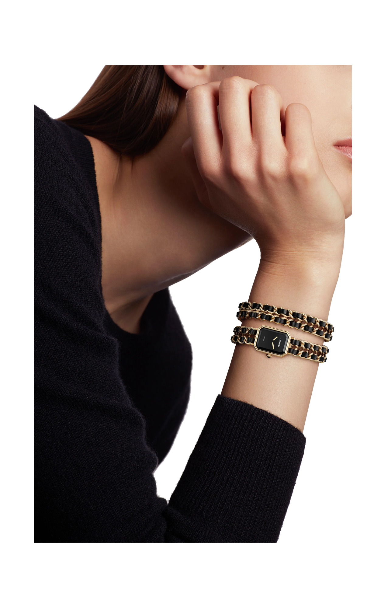 L’OROLOGIO CHANEL PREMIÈRE CATENA ICONICA DOPPIO GIRO REF. H10332 È UNA CREAZIONE CHE FONDE IN UN SOLO SEGNATEMPO L’ELEGANZA, IL GLAMOUR E L’IDENTITÀ ESTETICA DISTINTIVA DELLA MAISON: LA CASSA OTTAGONALE, ISPIRATA AL TAPPO DEL FLACONE DEL PROFUMO Nº 5 E ALLA FORMA GEOMETRICA DELLA PLACE VENDÔME, È LAVORATA IN ACCIAIO PLACCATO ORO GIALLO (0,1 MICRON), SOBRIO E LUMINOSO ALLO STESSO TEMPO; IL QUADRANTE LACCATO NERO AGGIUNGE PROFONDITÀ E UN CONTRASTO RAFFINATO CON LA CASSA DORATA, MENTRE LA CORONA PRESENTA UN CABOCHON IN ONICE CHE CONFERISCE UN TOCCO DI CARATTERE E RAFFINATEZZA. IL CINTURINO È DOPPIO GIRO, CON MAGLIE A CATENA GOURMETTE IN ACCIAIO PLACCATO ORO ALTERNATE A INSERTI DI PELLE NERA INTRECCIATA, RICHIAMANDO IL CELEBRE MOTIVO DELLA CATENA DELLE BORSE ICONICHE DI CHANEL: UN DETTAGLIO CHE VALORIZZA IL DESIGN RENDENDOLO INDOSSABILE COME GIOIELLO OLTRE CHE COME STRUMENTO DI MISURA DEL TEMPO. MOSSO DA UN MOVIMENTO AL QUARZO SWISS MADE, AD ALTA PRECISIONE, QUESTO MODELLO È PENSATO PER LE DONNE CHE VOGLIONO UN ACCESSORIO DI STILE SENZA RINUNCIARE ALLA COMODITÀ; L’IMPERMEABILITÀ È GARANTITA FINO A 30 METRI, SUFFICIENTE PER PROTEGGERLO DA UMIDITÀ E SPRUZZI. QUESTO SEGNATEMPO È PERFETTO PER CHI DESIDERA UN OROLOGIO CHE DIVENTI PARTE DELL’IDENTITÀ PERSONALE: DISCRETO NEL QUOTIDIANO, DISTINTIVO NELLE OCCASIONI FORMALI, CAPACE DI PARLARE DEL LUSSO FRANCESE CONTEMPORANEO CON SILENZIOSA ELEGANZA.
