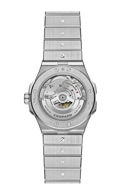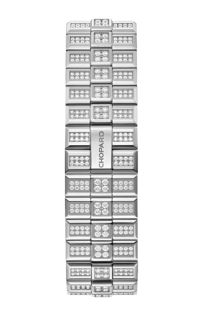 GLI OROLOGI SPORTY-CHIC DI CHOPARD, ISPIRATI ALLA GRAZIA DELL’AQUILA E ALLA MAESTÀ DELLE ALPI, ACCOLGONO IL SEGNATEMPO DI DIAMANTI ALPINE EAGLE FROZEN. LA CASSA DI 41 MM DI DIAMETRO E IL BRACCIALE INTEGRATO, IN ORO ETICO BIANCO 18 CARATI, SONO INTERAMENTE RICOPERTI DI UN PAVÉ DI DIAMANTI TAGLIO BRILLANTE, MENTRE SULLA LUNETTA SCINTILLANO I DIAMANTI TAGLIO TRAPEZIO. QUESTA VERSIONE GIOIELLO DELL’OROLOGIO DEDICATO ALLE “AQUILE CONTEMPORANEE”, LA CUI PERIZIA TECNICA È PARI SOLO ALLA RAFFINATEZZA ESTETICA, OSPITA IL MOVIMENTO CHOPARD 01.03-C A CARICA AUTOMATICA CON 60 ORE DI RISERVA DI CARICA. GRAZIE ALLA RICCHEZZA DEI SUOI DIAMANTI CHE RICORDANO I DELICATI CRISTALLI DI NEVE SULLE CIME DELLE ALPI, QUESTO LUSSUOSO OROLOGIO DI DIAMANTI SCINTILLA DI UN’AURA ETICA E RESPONSABILE.