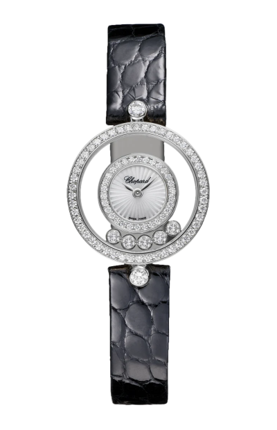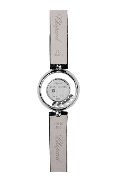 DAL 1976, ANNO IN CUI È STATO INVENTATO IL PRIMO OROLOGIO HAPPY DIAMONDS, I DIAMANTI MOBILI ILLUMINANO ALLEGRAMENTE LA COLLEZIONE. GLI OROLOGI HAPPY DIAMONDS RAPPRESENTANO INNANZITUTTO UNO SPIRITO LUDICO E SPENSIERATO DI INDIPENDENZA CHE SI PRESTA A INFINITE METAMORFOSI. VOLTEGGIANDO TRA DUE VETRI ZAFFIRO TRASPARENTI, GLI HAPPY DIAMONDS DANNO L'IMPRESSIONE CHE LE GEMME SIANO A DIRETTO CONTATTO CON LA PELLE. IL CELEBRE SEGNATEMPO ADOTTA OGGI NUOVI CINTURINI IN PELLE, LUNGHI E MORBIDI, CHE AVVOLGONO IL POLSO CON DUE GIRI, SOTTOLINEANDO LA PRESENZA MAGNETICA DI QUESTO OROLOGIO-GIOIELLO ALLEGRO E AFFASCINANTE. LITTLE DIAMONDS DO GREAT THINGS.