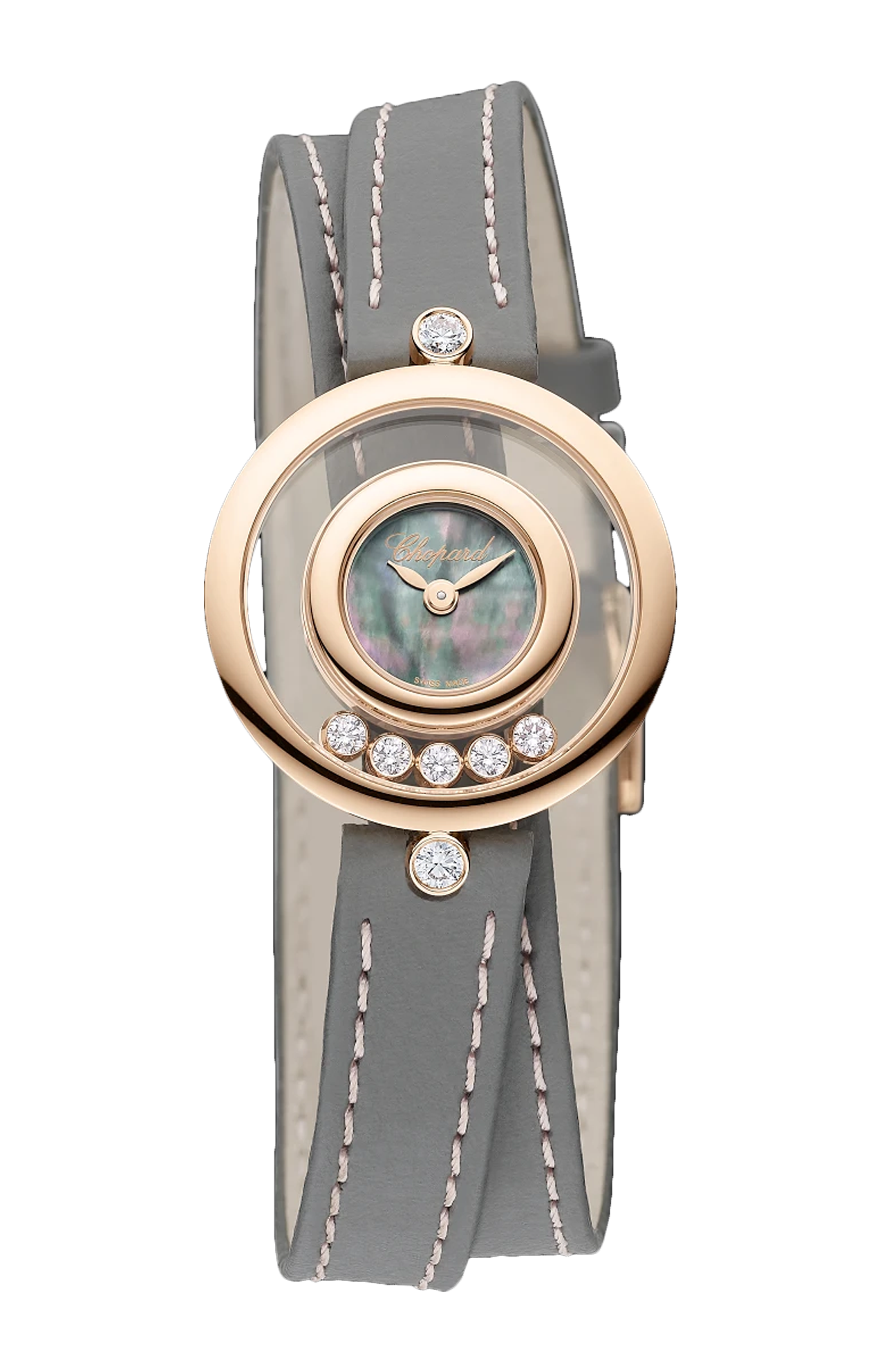 DAL 1976, ANNO IN CUI È STATO INVENTATO IL PRIMO OROLOGIO HAPPY DIAMONDS, I DIAMANTI MOBILI ILLUMINANO ALLEGRAMENTE LA COLLEZIONE. GLI OROLOGI HAPPY DIAMONDS RAPPRESENTANO INNANZITUTTO UNO SPIRITO LUDICO E SPENSIERATO DI INDIPENDENZA CHE SI PRESTA A INFINITE METAMORFOSI. VOLTEGGIANDO TRA DUE VETRI ZAFFIRO TRASPARENTI, GLI HAPPY DIAMONDS DANNO L'IMPRESSIONE CHE LE GEMME SIANO A DIRETTO CONTATTO CON LA PELLE. IL CELEBRE SEGNATEMPO ADOTTA OGGI NUOVI CINTURINI IN PELLE, LUNGHI E MORBIDI, CHE AVVOLGONO IL POLSO CON DUE GIRI, SOTTOLINEANDO LA PRESENZA MAGNETICA DI QUESTO OROLOGIO-GIOIELLO ALLEGRO E AFFASCINANTE. LITTLE DIAMONDS DO GREAT THINGS.
