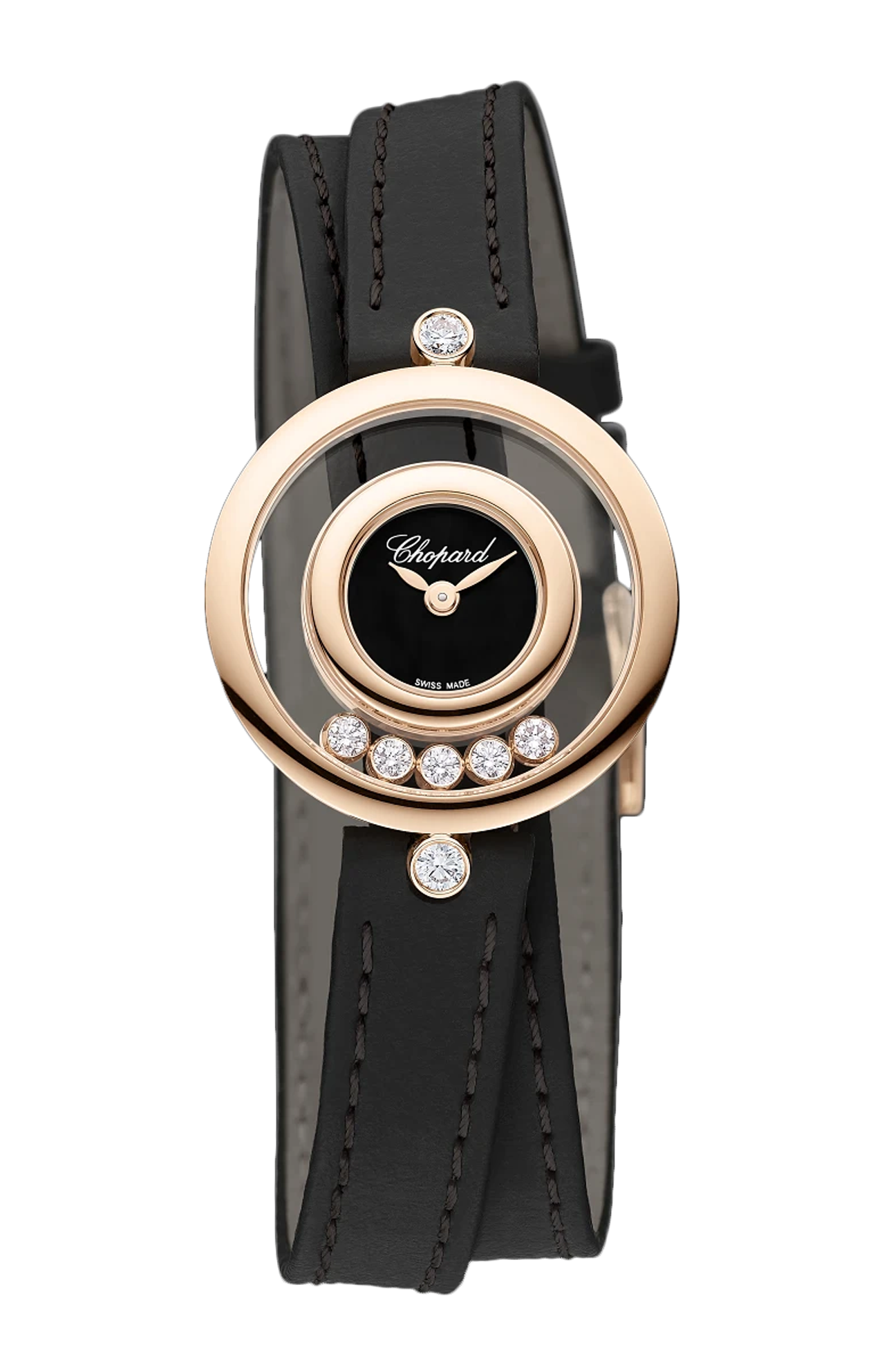 DAL 1976, ANNO DELL'INVENZIONE DEL PRIMO OROLOGIO HAPPY DIAMONDS, I DIAMANTI MOBILI ILLUMINANO ALLEGRAMENTE LA COLLEZIONE. GLI OROLOGI HAPPY DIAMONDS RAPPRESENTANO INNANZITUTTO UNO SPIRITO GIOCOSO E SPENSIERATO DI INDIPENDENZA CHE SI PRESTA A INFINITE METAMORFOSI. VOLTEGGIANDO ALL'INTERNO DELL'ASSOLUTA TRASPARENZA DI DUE VETRI ZAFFIRO, GLI HAPPY DIAMONDS DANNO L'IMPRESSIONE CHE I DIAMANTI SIANO A DIRETTO CONTATTO CON LA PELLE. FAR DANZARE I DIAMANTI SUL POLSO È UN'ESPRESSIONE ESTREMAMENTE ELEGANTE DI MALIZIA... LITTLE DIAMONDS DO GREAT THINGS.