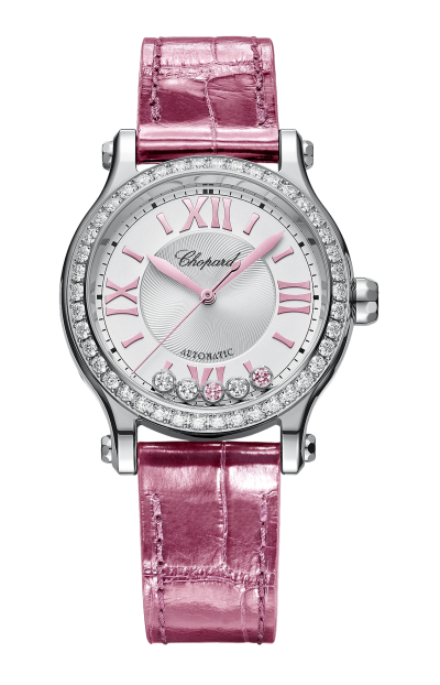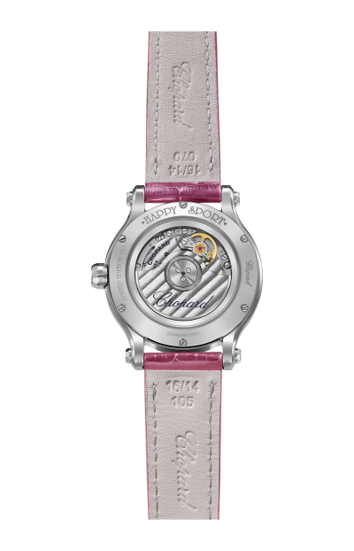LA COLLEZIONE HAPPY SPORT È L'EMBLEMA DELLA CREATIVITÀ E DELL'AUDACIA DI CHOPARD. LE SUE GIOCOSE PIETRE PREZIOSE, CHE DANZANO LIBERAMENTE TRA DUE VETRI ZAFFIRO, FANNO SOGNARE SIN DAL 1993, QUANDO CHOPARD È DIVENTATA LA PRIMA MAISON A CONIUGARE ACCIAIO E DIAMANTI. LA GRANDE COMPETENZA OROLOGIERA HA CONSENTITO A CHOPARD DI DOTARE IL MODELLO HAPPY SPORT DA 33 MM DI UN MOVIMENTO MECCANICO A CARICA AUTOMATICA APPOSITAMENTE SVILUPPATO PER LE CASSE DEI MODELLI FEMMINILI. LITTLE DIAMONDS DO GREAT THINGS. EDIZIONE LIMITATA A 250 ESEMPLARI.
