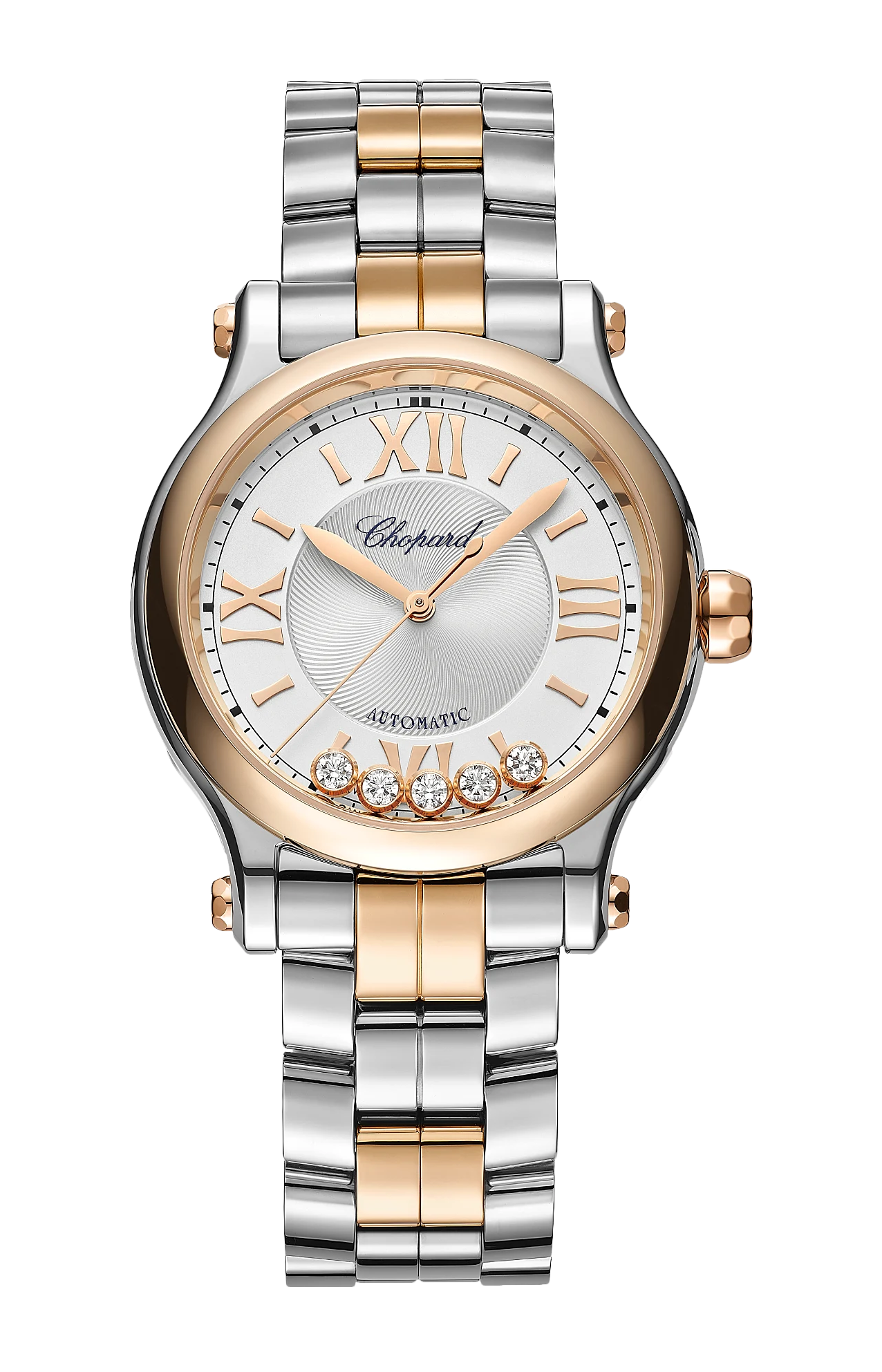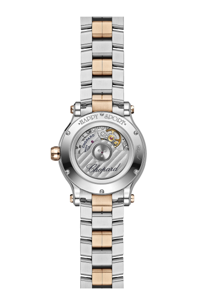 LA COLLEZIONE HAPPY SPORT È L'EMBLEMA DELLA CREATIVITÀ E DELL'AUDACIA DI CHOPARD. LE SUE GIOCOSE PIETRE PREZIOSE, CHE DANZANO LIBERAMENTE TRA DUE VETRI ZAFFIRO, FANNO SOGNARE SIN DAL 1993, QUANDO CHOPARD È DIVENTATA LA PRIMA MAISON A CONIUGARE ACCIAIO E DIAMANTI. LA GRANDE COMPETENZA OROLOGIERA HA CONSENTITO A CHOPARD DI DOTARE IL MODELLO HAPPY SPORT DA 30 MM DI UN MOVIMENTO MECCANICO A CARICA AUTOMATICA APPOSITAMENTE SVILUPPATO PER LE CASSE DEI MODELLI FEMMINILI. LITTLE DIAMONDS DO GREAT THINGS.