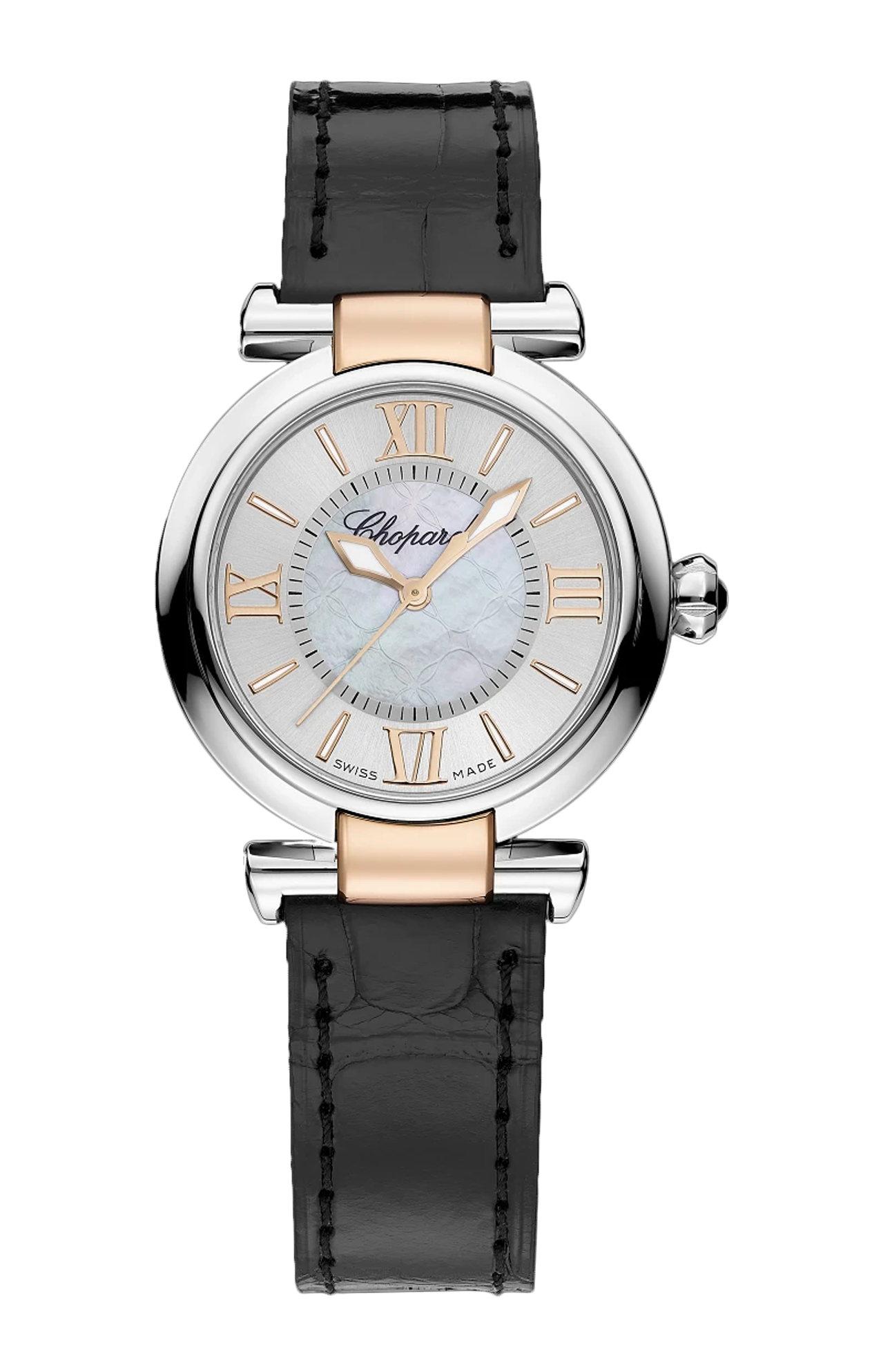 Con il suo profilo puro e stilizzato, la collezione di orologi Imperiale offre un'interpretazione contemporanea dei grandi simboli degli imperi storici. Motivi arabescati tratti dai ricami dei tendaggi su cui i monarchi apponevano le loro insegne, lancette traforate a forma di spada, indici delle ore in numeri romani e una corona curva come un fiore di loto: tutto evoca un'eredità gloriosa, mentre la forma delle anse richiama la tradizione delle colonne antiche famose per le proporzioni perfettamente equilibrate. A tribute to modern achievers.