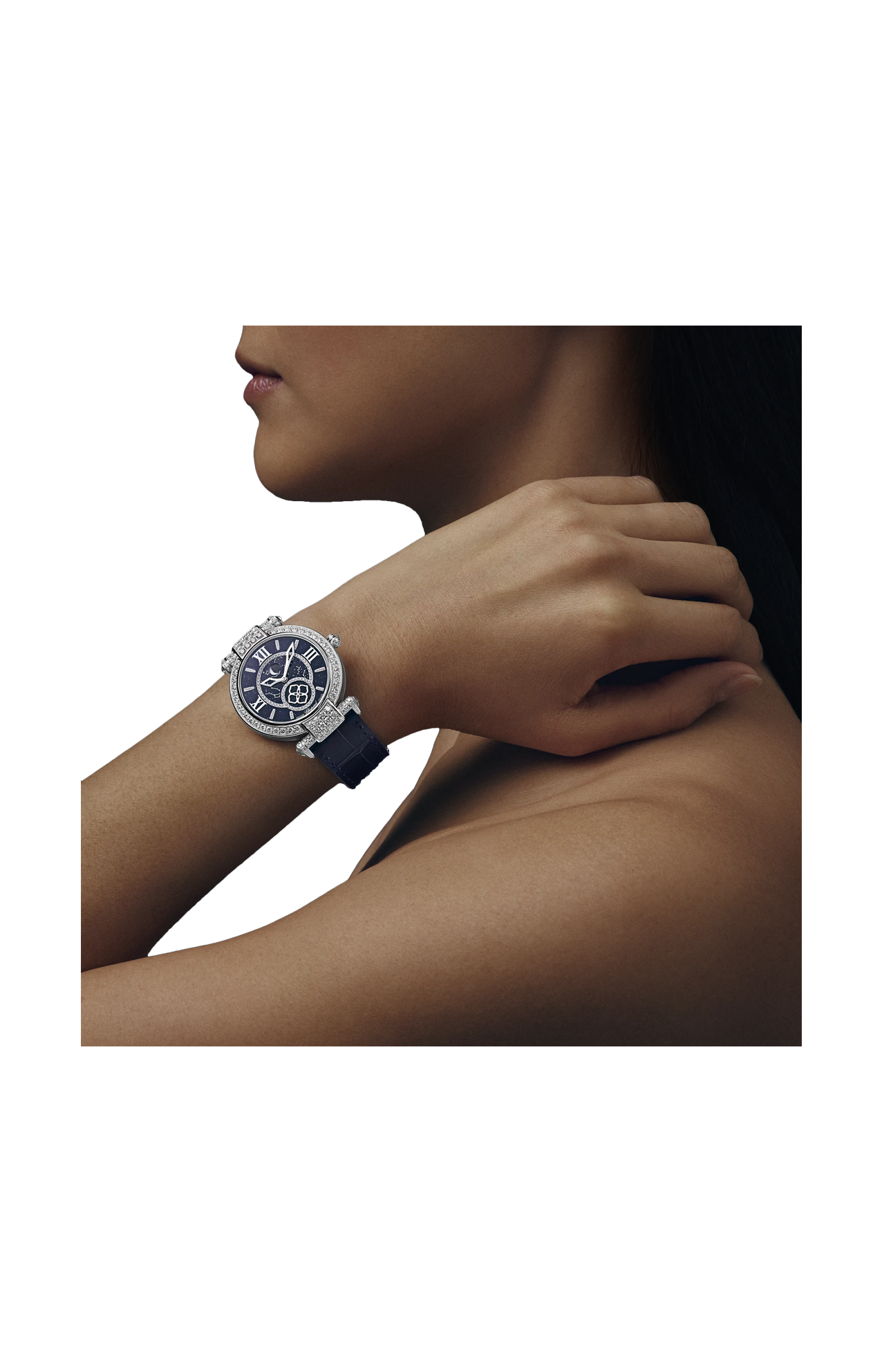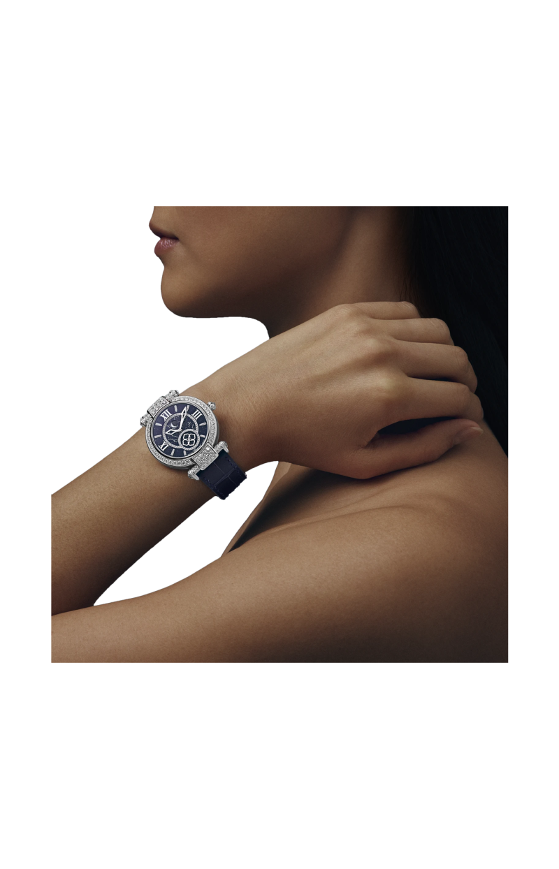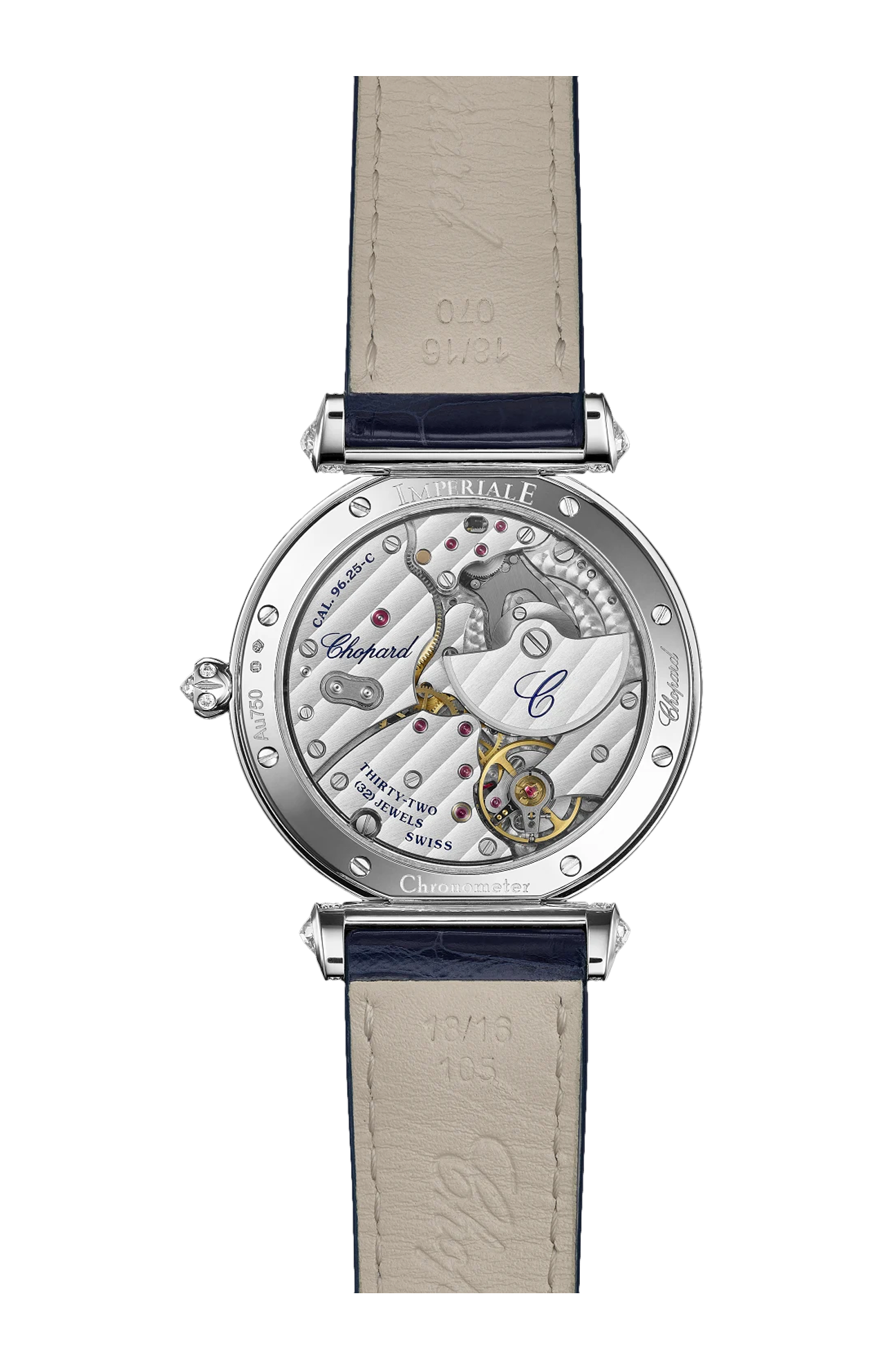 La collezione imperiale ha un design regale, sensuale, sofisticato ed elegante ispirato all'età imperiale. Questa bella complicazione presenta un quadrante in madreperla che mostra le maestose fasi della luna e le costellazioni dell'emisfero settentrionale. Una raffinata rappresentazione di due domini d'eccellenza di Chopard: orologeria e gioielleria. A tribute to modern achievers.