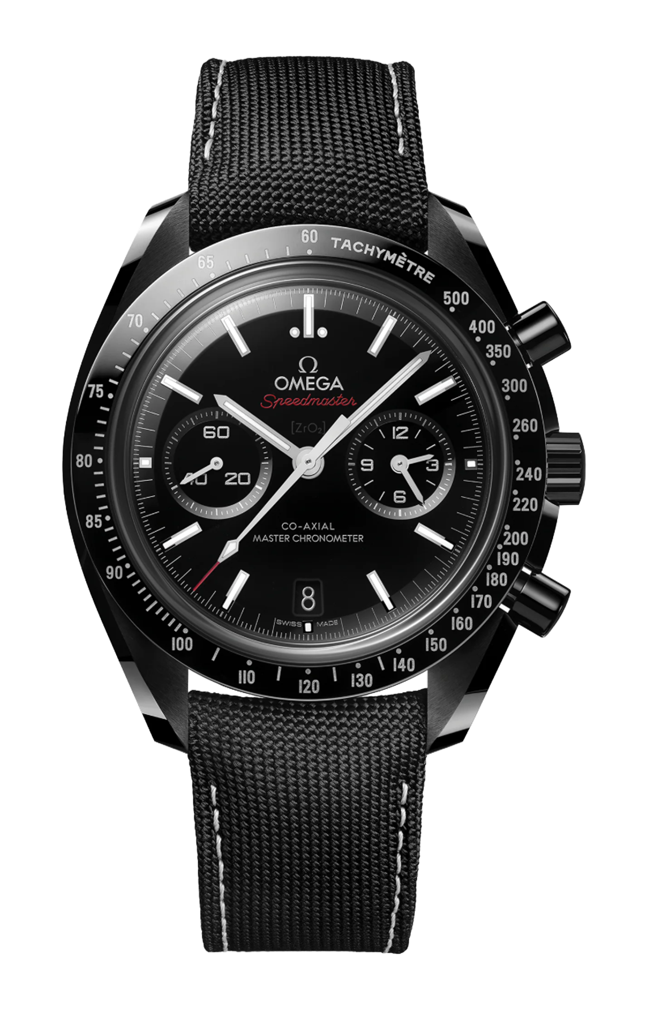 Animato dal calibro Co-Axial Master Chronometer 9900 a carica automatica di OMEGA, l’orologio è corredato da un cinturino in nylon nero con interno in caucciù nero, una fibbia déployante in ceramica e componenti incernierati a molla realizzati in titanio ceramizzato.
